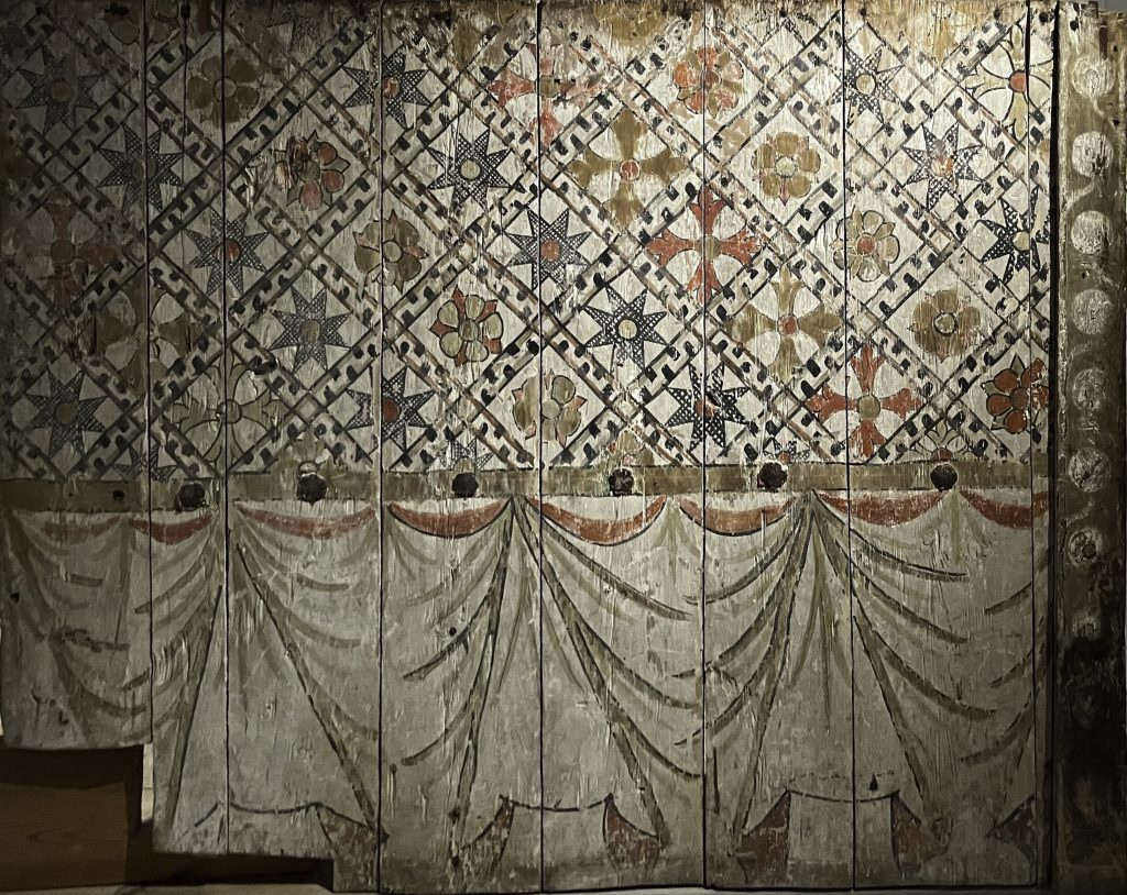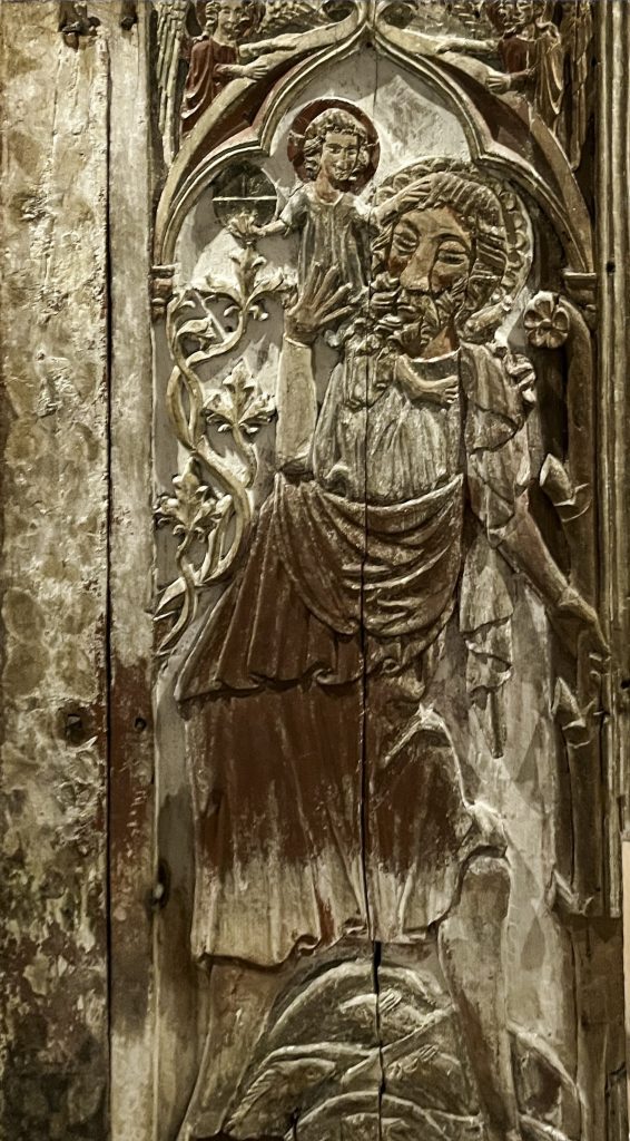 På gaveln finns en relief av den helige Christoffer bärande Jesusbarnet, som var en mycket populär bild under medeltiden. Det ansågs att den som sett en bild av den helige Christoffer inte skulle dö den dagen.
