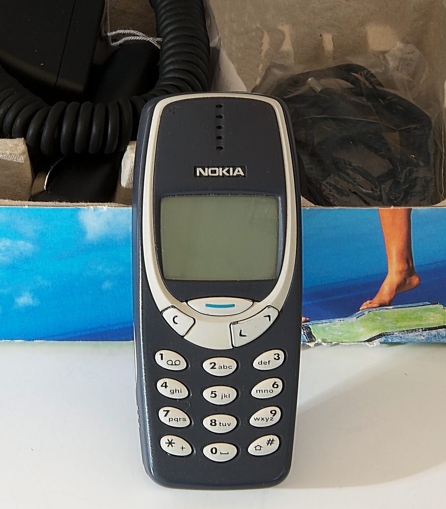 I samlingarna har vi såklart ett exemplar av en av världens mest sålda mobiltelefoner: Nokia 3310, med det ikoniska marinblå skalet. På denna trotjänare kunde man till exempel förlora sig i spelet Snake eller slita sitt hår över T9.